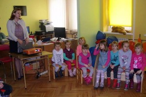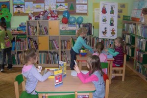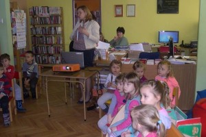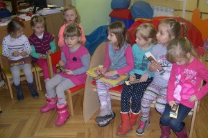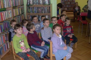 LEKCJA BIBLIOTECZNA "JAK POWSTAJE KSIĄŻKA" - PRZEDSZKOLAKI W BIBLIOTECE 20.02.2015r