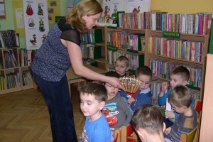 LEKCJA BIBLIOTECZNA "JAK POWSTAJE KSIĄŻKA" - PRZEDSZKOLAKI W BIBLIOTECE 24.02.2015r.