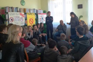 W spotkaniu brali udział uczniowie z ostatnich klas szkoły podstawowej i dwóch klas gimnazjum im. Jana Pawła II w Stojeszynie Pierwszym, a także nauczyciele. Najpierw Pani Alfreda Gierłach, bibliotekarka pracująca w Filii Bibliotecznej w Stojeszynie Pierwszym przedstawiła swoich gości, a następnie głos zabrała zaproszona policjantka. Pani Faustyna Łazur opowiedziała o aspektach i konsekwencjach prawnych uzależnienia od narkotyków. Wprowadziła obecnych na spotkaniu w świat przepisów prawnych, podjęła także temat odpowiedzialności prawnej i odpowiadaniu przed sądem za wykroczenia czy dokonane przestępstwa. Policjantka podkreśliła, jak ważna jest świadomość odpowiedzialności prawnej, a także poinformowała dzieci i młodzież, że już w wieku 17 lat młody człowiek odpowiada przed sądem za swoje czyny. Pani Faustyna wspomniała również o tym, że raz popełniony czyn czy wykroczenie zostaje w historii człowieka już na zawsze, akcentując przy tym jak niebezpieczne jest używanie substancji psychoaktywnych, które często prowadzi do popełniania czynów karalnych. Po wstępie pani Faustyny głos zabrał pan Łukasz Krzysztoń, który opowiedział więcej o samej specyfice uzależnienia od substancji psychoaktywnych. Wymienił konsekwencje zarówno biologiczne jak i psychologiczne, podając przy tym wiele przykładów ze swojej praktyki w pracy o ośrodku dla młodzieży w wieku od 13 do 18 lat w Cholewiance w Kazimierzu Dolnym. Pan Łukasz opowiedział także o coraz częściej występującym problemie używania „nowych” narkotyków, czyli dopalaczy. Psycholog wyraźnie zaakcentował jak szybko rozwija się uzależnienie w przypadku zażywania takich substancji i jak szybko pojawiają się skutki uboczne, często bardzo szkodliwe dla życia i zdrowia użytkownika. Po szczegółowym omówieniu konsekwencji wynikających z używania substancji psychoaktywnych nadszedł czas na pytania od uczestniczących w spotkaniu.