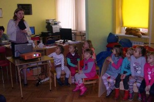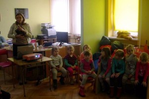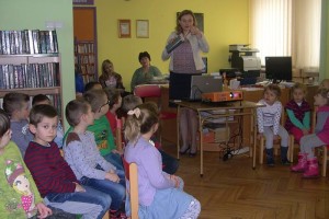LEKCJA BIBLIOTECZNA "JAK POWSTAJE KSIĄŻKA" - PRZEDSZKOLAKI W BIBLIOTECE 20.02.2015r