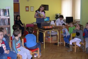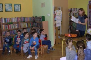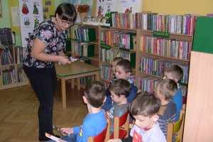 LEKCJA BIBLIOTECZNA "JAK POWSTAJE KSIĄŻKA" - PRZEDSZKOLAKI W BIBLIOTECE 24.02.2015r.